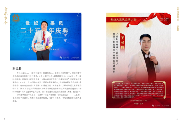 王长胜,作词人音乐人, 《新时代精神》歌曲出品人,原创词人原唱歌手。荣获河南商 丘市原创音乐优秀作品三等奖、5 月 22 日王长胜,汤萌萌版上线。2024 年 12 月《新 时代精神》现场演出原创歌曲搬上大舞台香港卫视和“寻找好声音”百城联动北京 演唱会。2023 年 12 月 28 日参加华夏之星百姓群星演唱会,同年迎春联欢登台央视《季 季精彩》迎春晚会演唱《大中国》和香港卫视《天南地北》大联欢华夏之星群星联 唱栏目。第 25 届世纪大采风品牌人物和第十届传统传承公益人物盛典受邀演出《新 时代精神》得到与会领导嘉宾好评。2024 年组建成立昌圣文化传媒(衡水)有限公司。