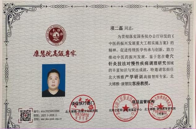项二磊的成长轨迹,是中国传统医学现代化与国际化的缩影。他师承安徽蚌埠常氏奇穴针灸第四代传人常德荣,系统学习了《针灸大成》《董氏奇穴》等典籍,并精通膏丸散剂炮制工艺。在临床实践中,他突破传统流派界限,将奇穴针灸与现代解剖学、病理学结合,形成独特的治疗体系。例如,针对脑脊恶性肿瘤患者,他采用“脊椎原位点上下左右取穴法”,结合五腧穴与中药调理,成功帮助17岁女孩重获新生;对强直性脊柱炎患者,他通过针灸通经活络,配合中药化湿去浊,使患者奇迹般挺直腰背。
