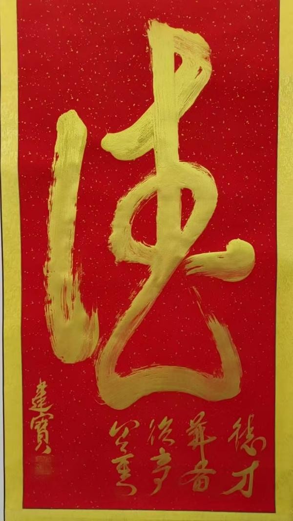 滕建宝自幼热爱书法,拜入榜书大师崔振海先生门下,得其真传,笔法日益精湛。后又受张中海书法大师指点,张大师曾任毛泽东警卫员,其书法蕴含深厚历史底蕴与伟人风采,滕建宝从中受益匪浅。