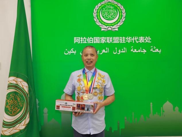 阿拉伯国家联盟驻华大使艾哈迈德·哈菲兹为夏积相颁发阿中文化友好交流使者荣誉证书。