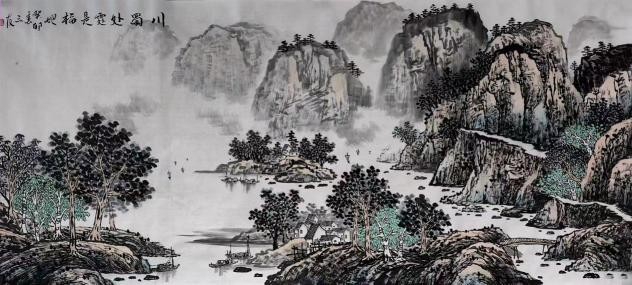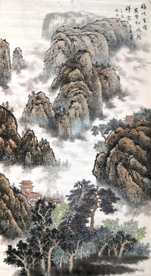 在他的画中,北方地区山势的绝险、树木的森茂以及水流激荡的景象都被描绘得淋漓尽致。观 者仿佛能够身临其境般感受到大自然的壮丽和神秘。这种美感的呈现使得赵玉林的画作成为了中国山水画中的佳作。