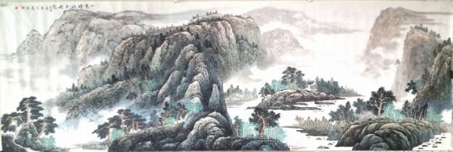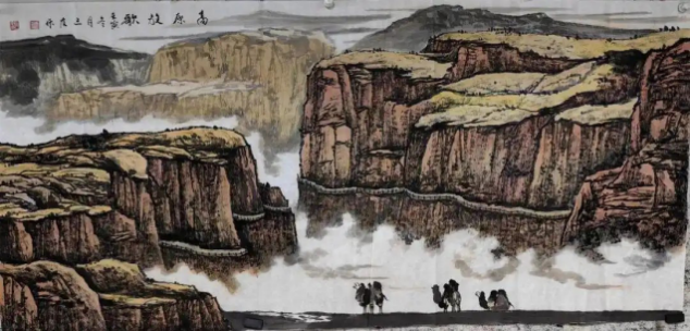 赵玉林是一位备受赞誉的画家,他的绘画技巧专精于山水画。 他的画作以巍峨的太行山和阴山崇山峻岭为主题,通过采用多层 次水墨铺陈的手法,同时运用浅绛青绿等细腻的色彩渲染技巧,