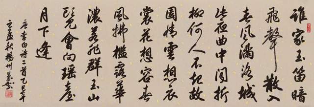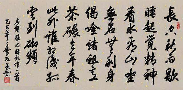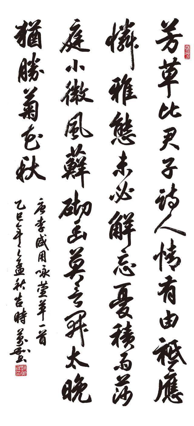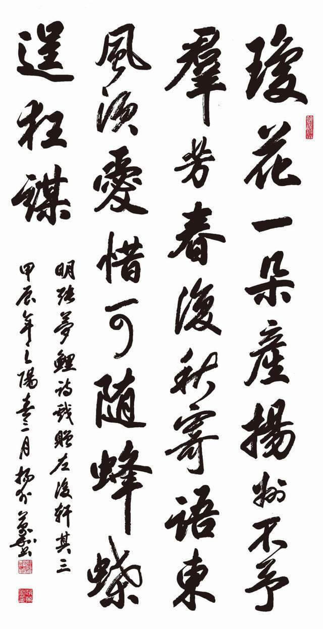 他能书各体,尤擅行草。其楷书温雅劲健、工整秀逸;行草书更是激情跳荡、矫健流动。偶作篆隶亦古朴端庄、雄厚苍浑,可谓动力弥深。