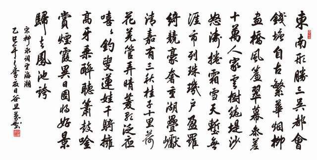 赵万和的书法能凝神为本,达到气和、气顺、气贯、气通。读他的书法如读好的散文,起、承、转、合,节奏分明,清新自然,一气呵成。有时行笔如骏马奔驰旷野,奔放而不浮躁;有时行笔如老牛耕深泥,凝重而不笨拙;能放能收,有快有慢,如打中国太极拳,舒展有致,内功在也。