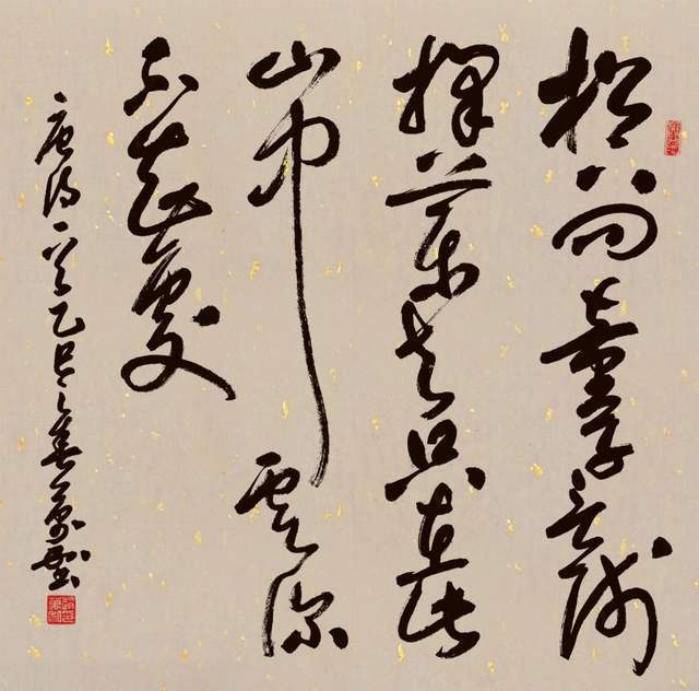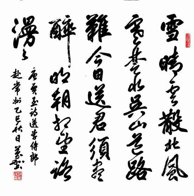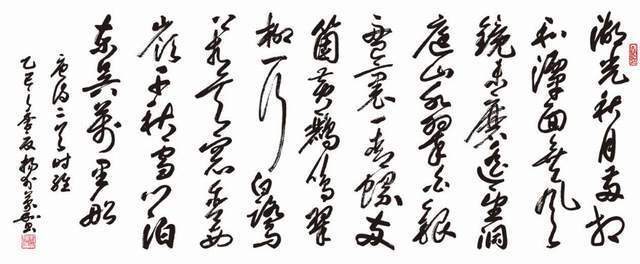 而赵万和的草书,则长枪大戟,摇曳生姿。一是他吸收了章草的成分,获得了额外的古意。二是强调了用笔的留驻。有时积点成线,增加了点画的内涵。三是避开了行间穿插,采用有行无列式布局,使作品气息流畅,自然大气,这也与他的审美追求一致。