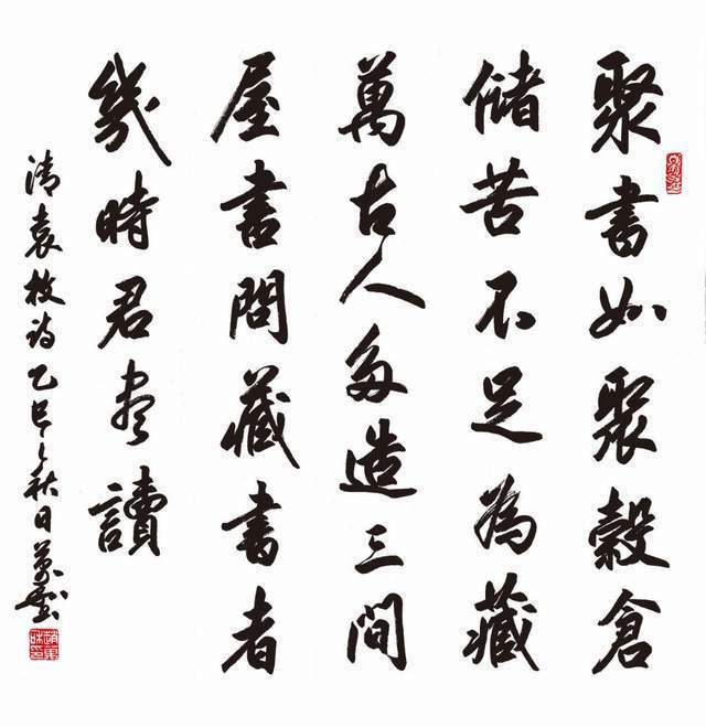 赵万和学书,入门既正,立意亦高,他坚持学“二王”、学“李赵”,又学一点和他的建筑专业背景相关的书法“建筑体”魏书,其书骨肉兼备,技法精熟,信手挥毫,随势生发,逸态横生。赵万和书法除老练、灵动之外,还有恬淡的意绪,自然平和又内蕴智巧,隐然有不寻常的风致,别具“文游台”的风雅,其审美体格偏于阴柔一路,这是高邮湖水的浇灌所致,仍可以坚持下去。哪一天,当“万和字”真的孵出了“万和体”,我是先要品尝品尝的。