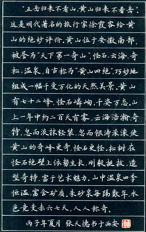 张天德,1963年7月生于陕西省大荔县。空军工程大学教授、硕士研究生导师。中央电视台《艺术传承》栏目客座教授、《中国艺术家》栏目组终身艺术顾问,环球旅游频道《美丽中国》栏目组特邀导师,中央新影中学生频道《时代人物》艺术顾问,中国国际教育电视台《闪耀中国》栏目组特邀艺术顾问,CCTV央视书画频道签约艺术家;中国硬笔书法协会理事,陕西书画院顾问、陕西省硬笔书法家协会副主席、陕西省书法家协会刻字硬笔委员会副主任、陕西省教育书法研究会监事、陕西广电网络传媒集团书画协会名誉主席。中国关心下一代工作委员会教育中心授予“优秀指导师”,北京钓鱼台国宾礼艺术委员会授予“钓鱼台国宾礼艺术家”,全国政协书画室授予“2025年全国两会重点推荐艺术名家”,文旅部艺术发展中心授予“人民艺术家”称号;故乡大荔县文联表彰为“杰出文艺乡贤”并聘为终身艺术顾问。