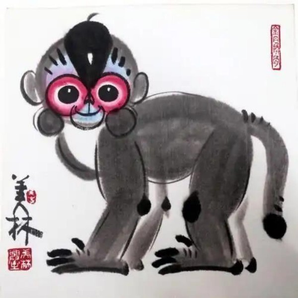 韩美林说:“人间最伟大的爱就是母爱。我常常会跟大自然、跟动物、跟我画的动物说话,我把它们都当成小孩,我会用母爱去对待它们。这和我的人生经历有关。不管小猫、小狗还是小鼠、小蛇,无论小熊猫、小狗熊还是小狐狸、猫头鹰,我统统把他们当做孩子,就这么简单。”韩美林的动物水墨画,多以生活中常见的动物为主题,其中有小驴、小马、小猴,还有小鹰、小鹿等等,它们神态天真无邪,像孩子般稚趣活泼,十分惹人怜爱,它们在韩美林的笔下都憨态可掬。韩美林是一位一直保持童心的艺术家,动物在他的眼中就像孩子一样,把动物像孩子一样去爱它们,去创作它们,他画小动物抒发情感,透过他简洁而个性鲜明的画面,可以感受到最为纯真的情感和向上饱满的生命力。