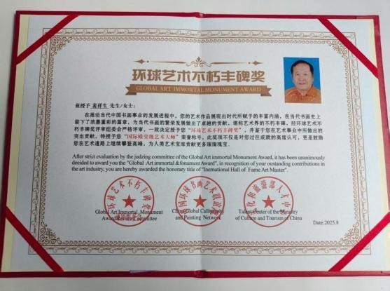 2025 年2 月,再次被评为《一代艺术大师》。2025 年 4 月,被评为《中国当代文坛巨匠》。
