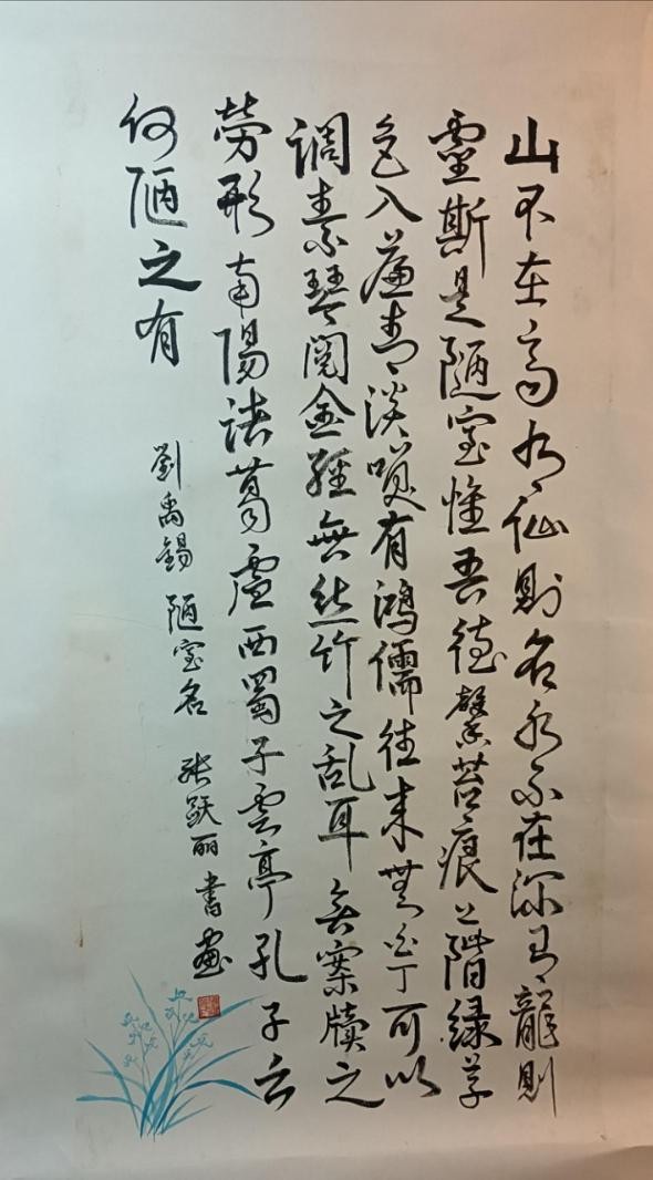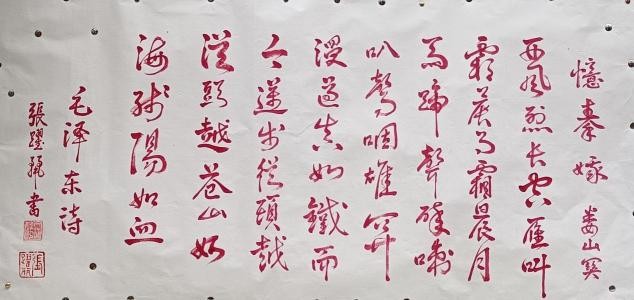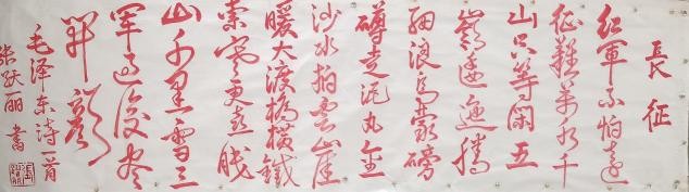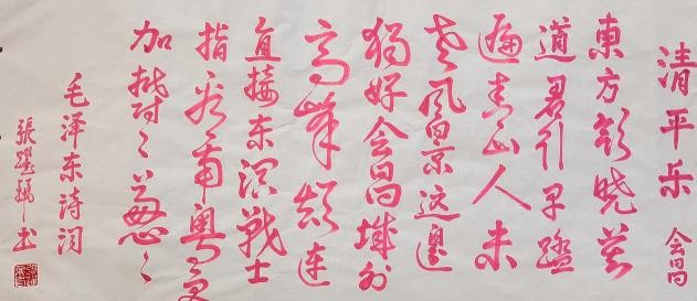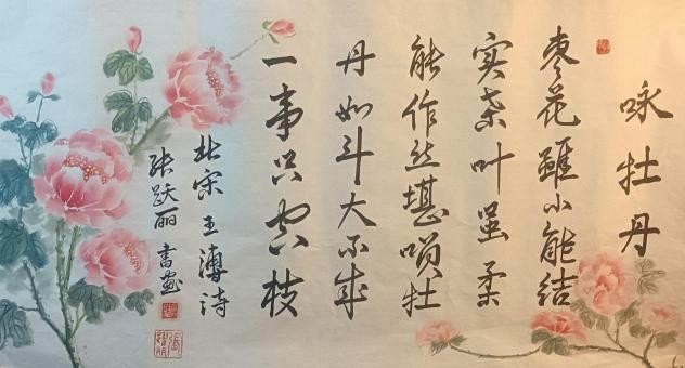 张跃丽毕业于广西艺术学院。现为:中央国家机关书法家协会会员,中国通俗文艺研究会理事,中国东方文化研究会艺术研究员,中国楹联协会会员,中国北京中宣盛世书画会会员,孔子奖章组织委员会艺术研究员。作品被白俄罗斯、圭亚那、塞尔维亚、尼泊尔等各国大使馆及泰国、塔吉克斯坦和孟加拉国等国家留学生收藏,备受国际瞩目。各画种类及书法都广泛地涉猎学习。观张老师的作品,传统的渊源和脉络显得很清晰。她的特点大多数是书法与绘画结合为一体的编幅居多。其作品通篇笔致工稳,使转得度,写得更是流畅逸美,放纵合度,可以看出,作者在书法一途,是相当下了工夫的。张跃丽老师的作品无论是笔墨意境还是结构布局,都充满她个人对于艺术的独到理解。其作品毫无做作之态,完全妙趣天成。作品字与字之间端庄、细致、严整,收笔很有特色,字字有来源,尽合古法。透出一种潇酒飘逸的韵味。显见作者所阅已多、已入正门。整体风格浑朴高迈,点画内敛,平实中寓巧意,也可以看出作者对笔锋的运动具有十分熟练的驾驭能力,行笔快慢的变化协调关系也处理得比较恰当。张老师不仅是一位拥有深邃学术造诣的学者,更在长期孜孜不倦的学术探索中,积淀了广博的历史知识与丰盈的文化底蕴。这份渊博的学识与岁月的沉淀,深深渗透并体现在她的作品中,赋予其一种难以言喻的书卷之气,熔铸成一种独具优雅俊逸之风的个人风格。