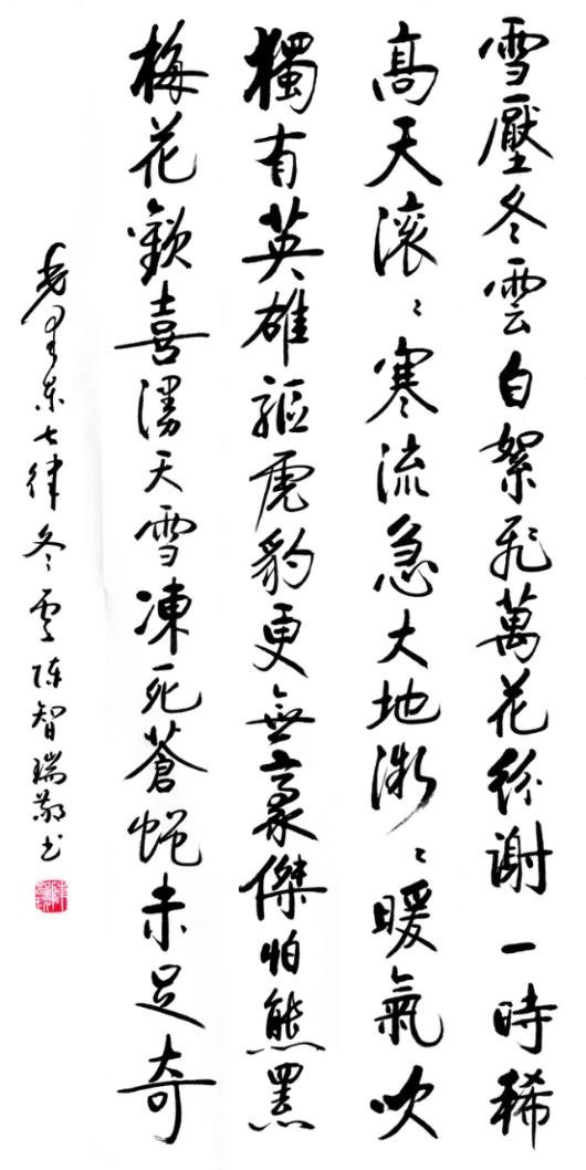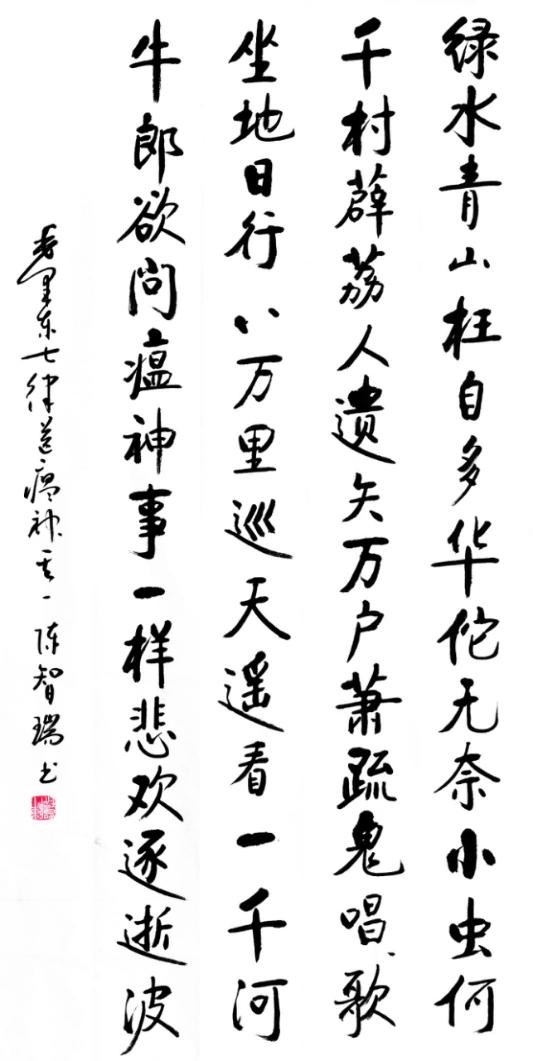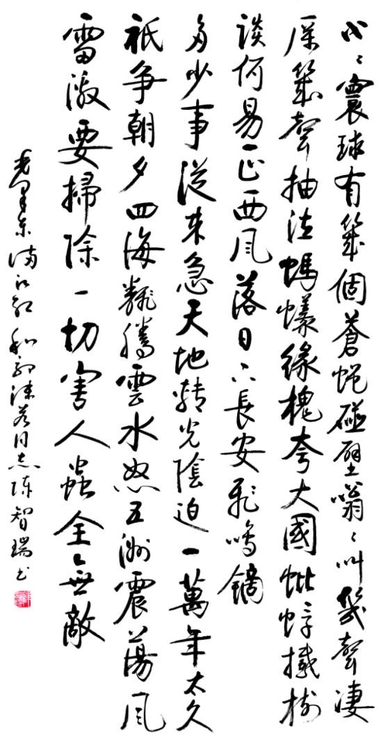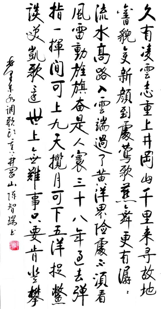 陈智瑞,男,1963年4月出生,汉族,中共党员,内蒙古巴彦淖尔市临河人。原巴彦淖尔市政协人口与资源环境委员会主任、一级调研员。退休后在巴彦淖尔市关心下一代委员会工作。中国硬笔书法协会会员、中国书画家研究会文化艺术委员会艺术顾问,中国诗书画家委员会副会长,中国楹联学会书法艺术研究会会员。巴彦淖尔市书法家协会副秘书长、巴彦淖尔市政协书画院院士。