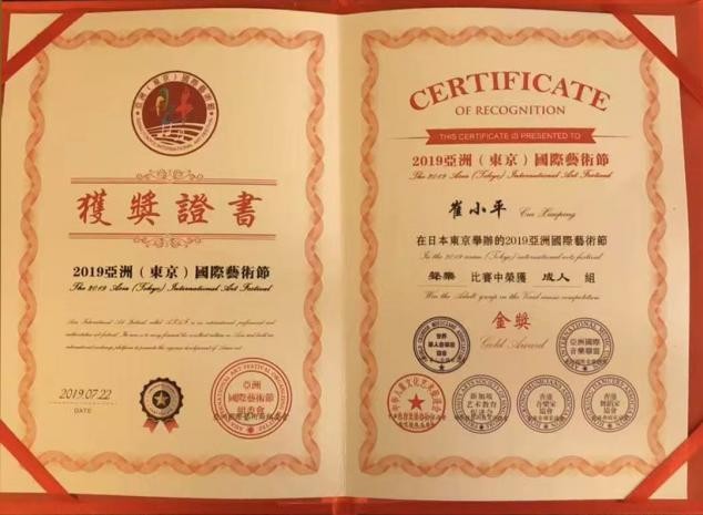 亚洲国际艺术节声乐比赛获得金奖.