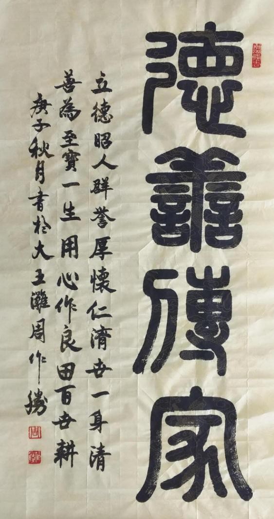 周作柽(称),笔名作胜,男,壮族,广西南宁市人,大学本科。2017年获国家一级书法师(证书编号:A0325)。自幼酷爱书法的周作柽老师,直到耳顺之年仍临池不辍,楷、行、草、隶、篆诸体皆临,做到格物致知,锲而不舍;博采众长,熟而能生;俯仰向背,避就朝揖;注重师承,坚持创新,使书写的各体字较好地传承传统书法艺术风格。尤擅龙、福、寿、祥、静、禅、佛、德、孝等字榜书,且草、篆、隶、行、楷都相得益彰,既注重实用性,又突出观赏性。作品曾多次参加全国书画展并屡次获奖,主要有:“繁荣文化,发展经济”(行草,作品及证书附后)荣获2002年纪念毛主席《在延安文艺座谈会上讲话》发表六十周年书画展二等奖;“龙行天下,魂系中华”(篆书,作品荣获纪念辛亥革命100周年书画活动优秀奖;荣获2016年第七届“羲之杯”全国诗书画家邀请赛二等奖;荣获2016年全国第十六届庐山杯书画大赛银奖;荣获2017年第四届“伟人颂·中国梦”全国诗书画大赛一等奖; 2018年全国诗书画家创作年会一等奖; 2019年第七届中国梦想杯诗书画大赛金奖; 2020年中国当代作家书画家代表作文库一等奖; 2021年庆祝建党100周年全国文艺家精品大系特等金奖(获奖证书和奖杯均有证书收藏) 。2017年经中国书画职称润格评定中心专家评定并颁发作品润格证书(证书编号:A0756)。现聘为中国硬笔书法协会会员(会员证编号:2016031329)、北京华夏兰亭书画院院士(院士证号:A0615)、《羲之书画报、诗书画家艺术报》签约诗书画家、北京华夏道德汇谷书画院院长。