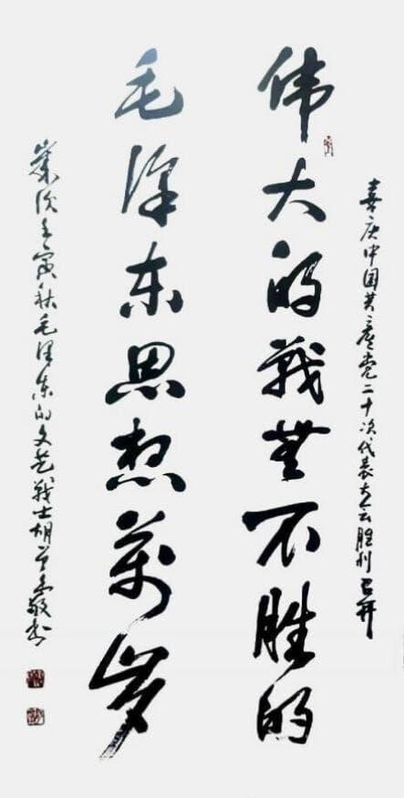 胡曾禹先生多年来笔耕不辍沉醉于书画艺术创作, 功力深厚,佳作频出,震惊艺坛。其作品中锋隐居, 书风清瘦挺拔,繁不致乱,少不显疏,笔墨熟练,形 成了典雅神韵,深沉隽永,风采照人的书风,更令人 敬佩的是其作品里包含了浓郁的爱国情怀和积极向上 的精神风貌,极具教育意义。
