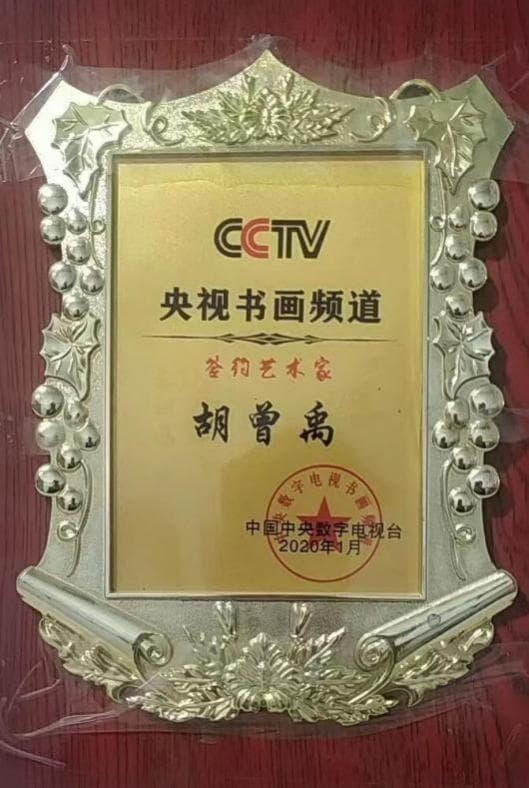 2020 年胡曾禹被国际名人百科授予中国最美书画 家。在世界抗疫中其书法祝语被选百家之中并授予有 十个大使馆大使签名奖牌。2021 年由国际名人百科举 荐参加中意文化交流被评为中意首席外交官。抗日战 争胜利七十周年胡老师的作品在北京工人文化宫展出 后又参加了中国抗日战争七十周年展在旧金山展馆展 还在展着没有退回。2022 年9 月特聘为博鳌亚洲艺术 人才研究中心“研究员 ”。2023 年被评为国家一级美 术师及润格评选委员会艺术顾问,2023 年度感动中国人物。荣获[纪念联合国成立 75 周年---联合国和平艺 术奖]、[联合国重点推荐艺术家]、[联合国和平艺术 大使]荣誉称号。