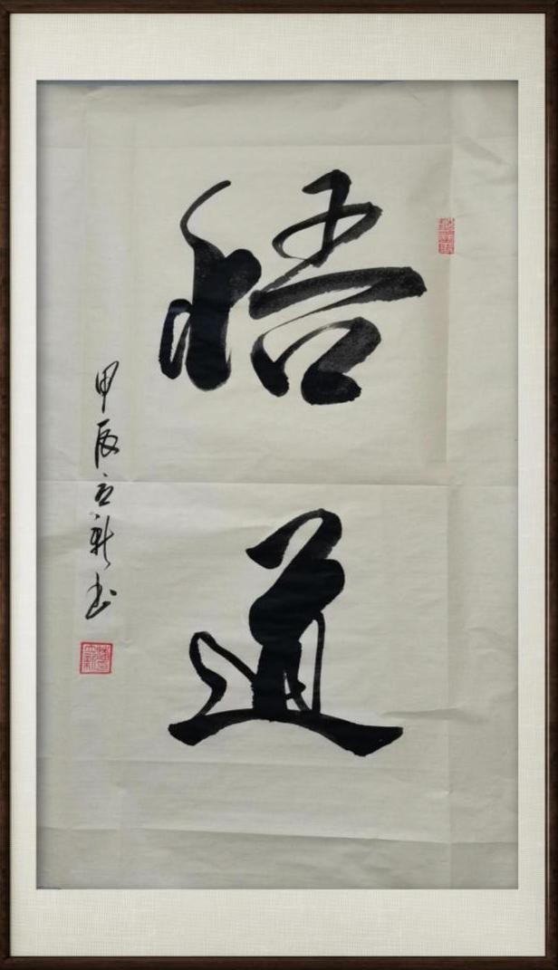 从技法层面分析,潘立新的书法作品兼具晋代文人书法的雄秀考究与草圣怀素狂草的磅礴气势。用笔方刚柔并济,线条流畅自如,展现出极高的控笔水平,心笔一体,和谐自如。在用墨上善于根据不同作品的主题和情感需求调整墨色的变化,使得作品能给出强烈的视觉空间层次感,从而生发出外在的冲击力和内涵上的心灵触动。当然,他的书法作品在布局上也有巧妙构思的智慧,无论条幅还是中堂,都做到疏密有致、节奏明快,充分体现了他对书法美学空间的构建才华,以白计黑,以黑计笔,笔里有墨,墨里有笔,空间要妙,品味无穷!