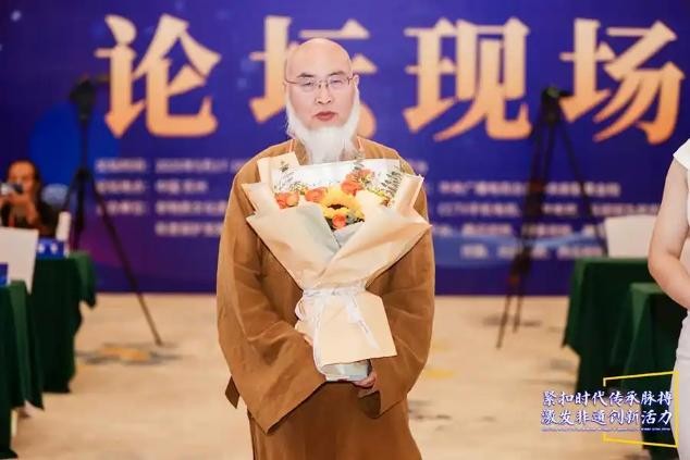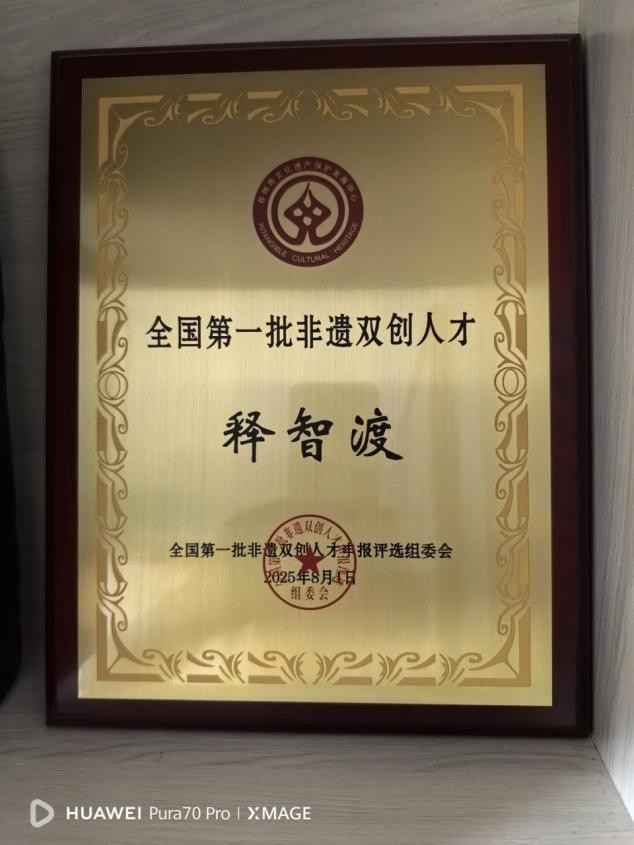 智渡禅师简介禅师,俗家姓张,法名昌身、字智渡、起渡、妙定、衍明……皆传承法师所赐。禅师生于浙江仙居,毕业于武汉水利电力学院(现已并入武汉大学)。出家后常住浙江天台山慈恩寺,是当代肉身菩萨永慈大师禅密净律诸法脉的接续者,2003年5月担任住持至今,也是佛门天台宗46代、禅门沩仰宗第10代法嗣。同时,禅师尚是镜心印社国际书画艺术研究中心主要创办人、兼任慈恩寺佛教艺术研究院代院长,中国玉观音慈善义诊队顾问、武汉大学深圳研究院特聘哲学教授...... 禅师慈悲为怀,倡导护生、复兴文化与临终关怀等公益慈善事业,并兼顾佛像雕刻、寺院规划、建筑设计和工程监理。禅师于上世纪九十年代初即倡导非药物疗法,并实践用分子医学和分子生物学来分析和研究病理,已有相关著作提交出版社审批。在书法和著述方面也有所成:禅师所写的“福”字意象画书法,据说是继康熙“福”字之后既拥有了五字合一又凸显了意像字画的不二的创举;2016年春节至今,已有上万“福”字进入了千家万户。禅师的梵文书写与禅意画也很有特色。出版的书籍和纪录片有《佛门探宝》、《幸福大道》、《当下解惑》、《临终关怀》往生教导片等等;创作的歌词有《白云山的月亮》、《皈依三宝》、《受戒好》、《罗汉舞》、《天台山》、《燃灯古洞》等十多首,其中《天台山》由当时的中国音乐家协会副秘书长田晓耕谱曲,《罗汉舞》由作曲家蓉梓谱曲…… 禅师重视人才培养,传法授徒严格认真,讲究依业、对机。自从2003年接任慈恩寺住持以来,以弘扬止观为己任,其影响已及全国各省市与欧美和东南亚。2022年被评为人民书画家,2023被评为国礼艺术家、国际和平艺术家,2025年世纪大风釆活动大会上被授予农业领城品牌人物