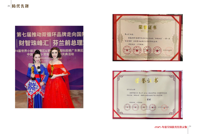 2025 年 9 月参加杭州的国际艺术盛典文化交流活动,受到多位总统的接见认可并颁发了:华语 乐坛《最受欢迎的歌唱家》奖.