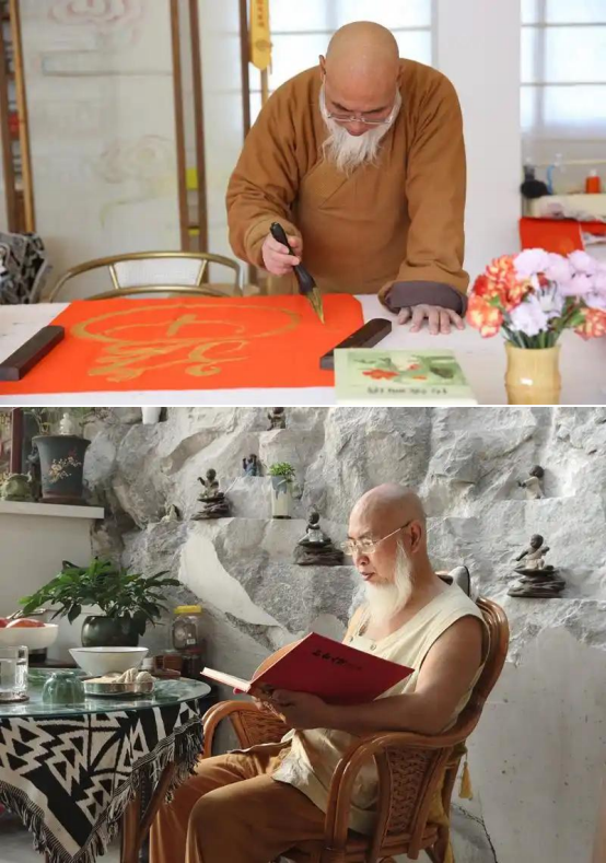 中国玉观音慈善义诊队顾问、 武汉大学深圳研究院特 聘哲学教授...... 禅师慈悲为怀,倡导护生、复兴文化 与临终关怀等公益慈善事业 , 并兼顾佛像雕刻、 寺院 规划、 建筑设计和工程监理 。禅师于上世纪九十年代 初即倡导非药物疗法 , 并实践用分子医学和分子生物 学来分析和研究病理,已有相关著作提交出版社审批 。 在书法和著述方面也有所成 :禅师所写的“福”字意 象画书法 ,据说是继康熙“福”字之后既拥有了五字 合一又凸显了意像字画的不二的创举; 2016 年春节 至今 , 已有上万“福”字进入了千家万户 。禅师的梵 文书写与禅意画也很有特色 。 出版的书籍和纪录片有 《佛门探宝》、《幸福大道》、《当下解惑》、《临终关怀》 往生教导片等等;创作的歌词有《白云山的月亮》、《皈 依三宝》、《受戒好》、《罗汉舞》、《天台山》、《燃灯古 洞》等十多首 ,其中《天台山》 由当时的中国音乐家 协会副秘书长田晓耕谱曲,《罗汉舞》由作曲家蓉梓谱 曲 … … 禅师重视人才培养,传法授徒严格认真,讲究 依业、对机 。 自从 2003 年接任慈恩寺住持以来 , 以 弘扬止观为己任 , 其影响已及全国各省市与欧美和东 南亚。2022 年被评为人民书画家,2023 被评为国礼 艺术家、 国际和平艺术家 , 2025 年世纪大风釆活动 大会上被授予农业领城品牌人物