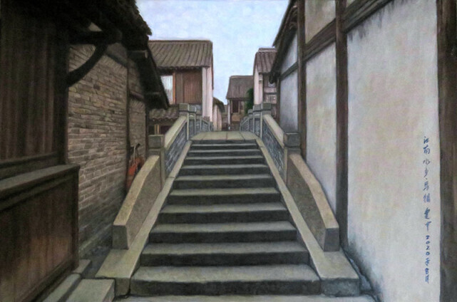 油画《江南水乡-乌镇风景三》(60x40cm)