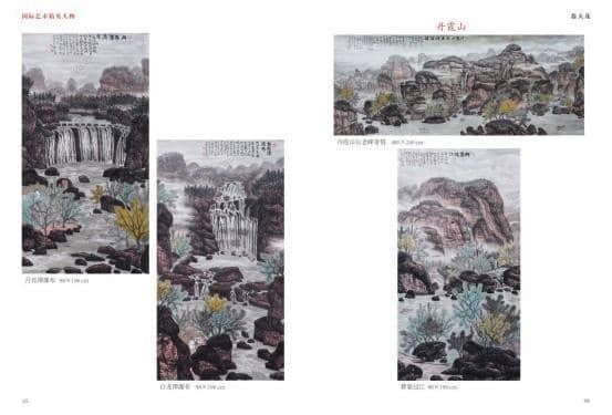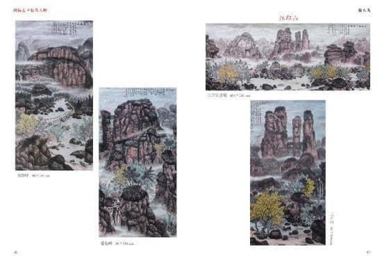 徐天茂先生的丹霞山水画,是自然与艺术的完美融合,每一幅作品都饱含着他对丹霞地貌的深刻理解 与独特感悟。在绘画技法上,他大胆创新,根据丹霞地貌的特点,创立了一套别具一格的丹霞山石皴法。运用中锋线条,精准勾勒出丹霞山石的裂纹与外形,凸显其硬朗质感,展现出山体的坚毅与刚强;以侧锋 表现山体坍塌剥落之处,生动地呈现出岁月的沧桑痕迹,赋予画面历史的厚重感;巧用点笔描绘丹霞山的 洞穴和窟窿,为画面增添丰富细节与层次感,使画面更加生动逼真 。他巧妙地将中国山水画山石皴法三大 类有机融合,使画面点、线、面要素齐全,和谐统一,既有线条的流畅之美,又有面的厚重之感,还有点 的灵动之韵。在用色上, 他精准把握丹霞地貌 “色如渥丹” 的精髓,大胆而细腻地运用色彩,浓、淡、干、 湿墨分五彩,色阶层次分明,将丹霞地貌的雄浑壮丽与灵动秀丽展现得淋漓尽致,既有南方山水的秀润婉约, 又兼具北方山川的雄浑壮阔,于中国画坛独树一帜,开辟出一片全新的艺术天地。多年来,他深入丹霞地 貌景区写生创作,用画笔记录下丹霞的绝美瞬间,共创作了 168幅丹霞山水画,每一幅都是独一无二的艺 术珍品。