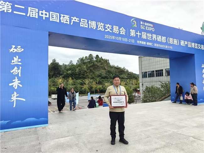 在10月21日第十届世界硒都(恩施)硒产品博览交易会(简称“硒博会”)“名优硒产品”授牌仪式上,黑龙江巨源富硒农业有限公司(以下简称“巨源农业”)旗下产品“富硒豆浆粉”凭借其卓越品质与创新价值,荣获“最具创新力名优硒产品奖”。这一荣誉不仅是对企业实力的肯定,更是海伦市大力发展富硒产业、打造“中国黑土硒都”战略取得的又一丰硕成果。