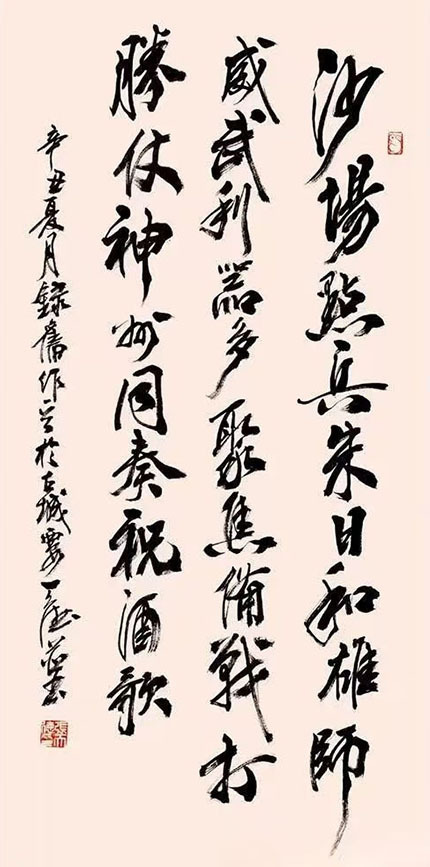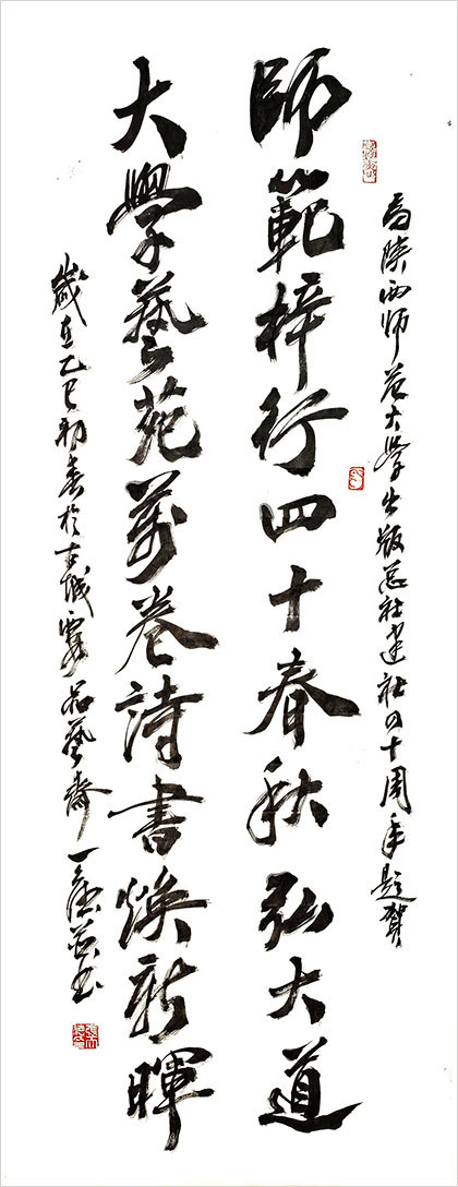 书法作品入选“首届中国书法艺术节”等大型展览,在中国美术馆、中国革命军事博物馆以及美国、俄罗斯、加拿大、西班牙、日本、韩国、中国香港、中国澳门等地展出;经《中华英才》半月刊社推荐,书法作品以瓷板画形式在井冈山黄洋界景区及山西太原古县城永久陈列展出,在韩国碑林园等地有书法碑刻,在“献礼建国70周年华夏品牌艺术名家名作全国联展”中获特等奖;艺术海报在2025蛇年春节高铁专列主题巡展,艺术成就视频多次登陆纽约时代广场大屏。