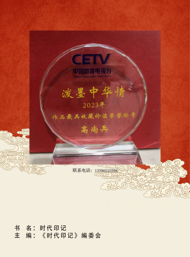 科特迪瓦共和国驻中国大使授予高尚兵先生中科艺术交流使者的光荣称号和证书!并收藏两幅八平尺作品《年年有余》《惠风和畅》! cETV 中国教育电视台泼墨中华情栏目组授予高尚兵先生的作品 2023 年度全国最具收藏价值荣誉称号和证书!中央新影中学生频道 2025 年特聘高尚兵先生为终生绘画艺术教育顾问和证书!其作品深受国内外美术馆,博物馆以及广大收藏者的喜欢和收藏!