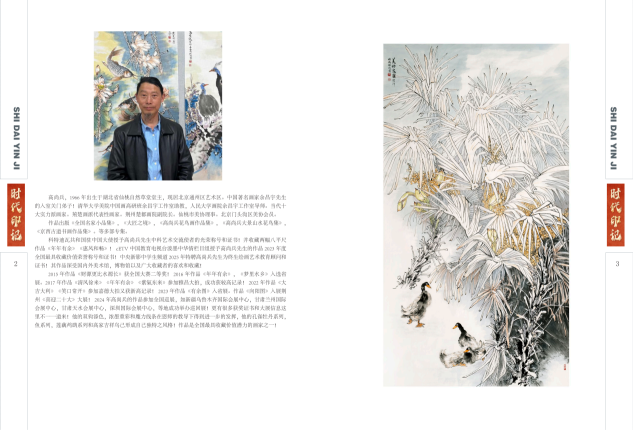 2015 年作品《财源更比水源长》获全国大赛二等奖! 2016 年作品《年年有余》, 《梦里水乡》入选省展。2017 年作品《清风徐来》《年年有余》《紫氣东来》参加雅昌大拍, 成功获较高记录! 2022 年作品《大吉大利》《笑口常开》参加嘉德大拍又获新高记录! 2023 年作品《有余图》入省展。作品《向阳图》入展荆州《喜迎二十大》大展! 2024 年高尚兵的作品参加全国巡展,如新疆乌鲁木齐国际会展中心,甘肃兰州国际会展中心,甘肃天水会展中心,深圳国际会展中心,等地成功举办巡回展!更有很多获奖证书和大展信息这里不一一道来!他的双钩添色,浓墨重彩和魔力线条在恩师的教导下得到进一步的发挥,他的孔雀牡丹系列,鱼系列,莲藕鸬鹚系列和高家吉祥鸟己形成自己独特之风格!作品是全国最具收藏价值潜力的画家之一!