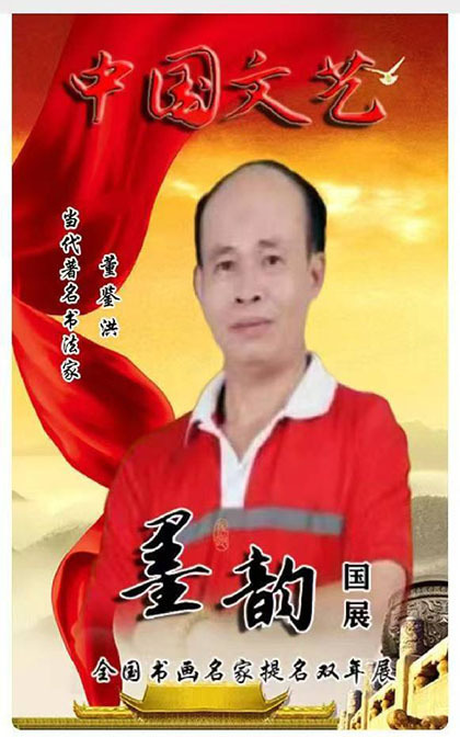 董鉴洪,笔名:祥诚达仁,汉族,1963 年生,广东省云浮市都杨镇人。当代著名实力书法家。《中国新闻杂志社》艺术顾问,中国功勋艺术家,中国国礼艺术大师。