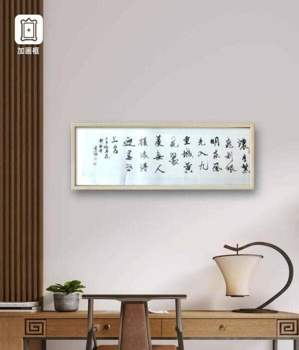 在笔墨挥毫和字势结体方面,黄金海先生也是深知“结体之功在学力,而用笔之妙关性灵”的翰墨法门。用笔时,时如清风出袖,明月入怀,时如陆断犀象,崩浪雷奔。起笔时沉着老练,行运时迂回劲缓,收笔时干净利落,由此通幅章法,真可谓是有浩浩落落之怀,处处不慢不越,字字巧使合宜!诚然,能有如此优秀的书功、书品,与他自身丰富的文化修养与内涵密不可分,仅在文学领域方面,他就有多篇个人作品获得殊荣、并入选书画集。故今日称他是一位“学养型”的文采书法家,我认为应当也是较为贴切的。
