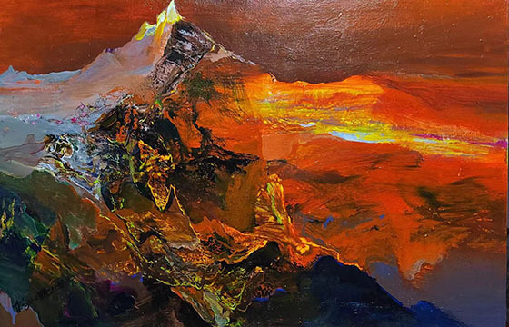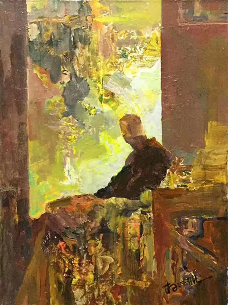 “新”是他的文化智慧在油画传承过程所生发出来的创建造诣。新在何处?不得不说一下他传统文化修为的精深。他虽然是手执油画之笔,技修为西,传统文化磨砺却是心修的核心,品修为东。于是在他的油画创作中,会明显渐漫进中国画的气韵生动,油画不仅仅用块面光影来造型,还穿插进线条皴笔的灵动!油画技法和中国画法能非常和谐的统一在一起,不违和,更不生硬呆板!油画与中国画的技法在他的创作里,绝然没有碰撞后的撕裂伤痕,全然是融合完美的状态,依靠的是什么?当然是他对东西文化的深谙掌握。没有文化修为的极致高度,难有技高一筹的文化统融操作。所以看他的油画,就是在仰观文化修养的精彩!画如其人,在他新油画传承主义的实践中,也得到了侧面的印证!