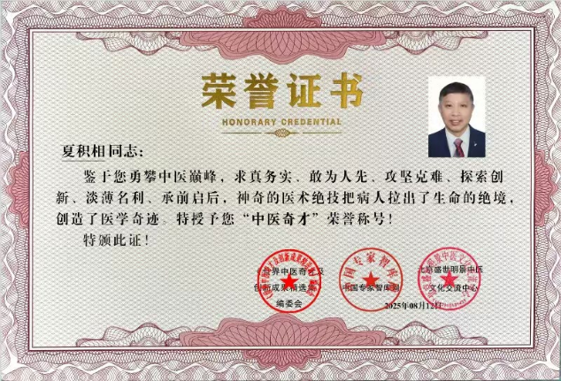 国务院医改办。第一健康报道。健康中国,宣传形象大使。全国劳模,全国五一劳动奖章,七一勋章。中华总工会。工人先峰号荣誉称号,国际最具影响力风云人物图书出版。時代先峰。北京電視臺,環球衛視,央視頻,央視七套,發現之旅,浙江科技頻道,和全网二萬多家媒体報道,福布斯書出版,納斯達克大屏報道,北京地鉄號綫車門巡展。在头条,百度。浏览器,名人名家,名人百科,搜,夏积相,或搜,一种治疗颈椎病枕头。