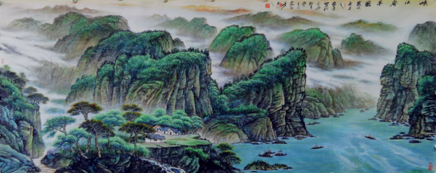-灵秀之韵:山腰以淡墨晕染云雾,溪流以细笔勾出波纹,留白处藏“呼吸感”;
