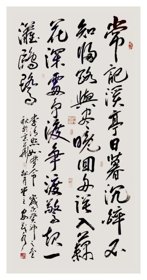 安茂水的书法,是“以书入画”的延伸,亦是独立的艺术表达。其作品兼具“碑之雄健”与“帖之秀雅”:
