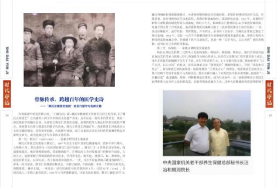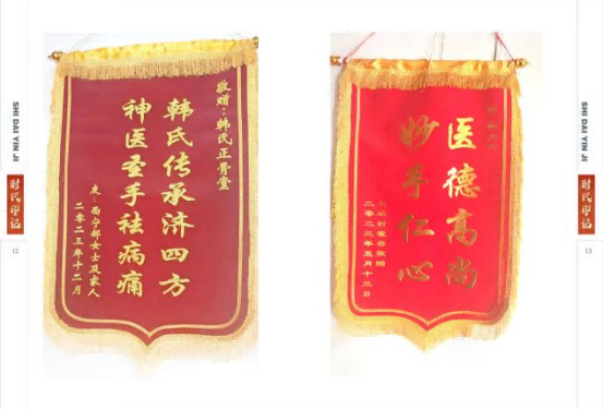 “正骨康复操 ”。坚守“医者仁心 ”理念,推动韩氏正骨技艺活态传承,发扬光大。第一代韩宝仁,韩氏正骨技艺创始人。生于 1897 年,是青海兽医名家,百度,湟中县志都有记载。成就青海人民出版社出版了《民间兽医韩宝仁医疗经验》一书。第二代韩加佑。终年 79 岁,为韩宝仁长子,在其父言传身教下,接骨 60 余年,技术精湛颇深,声名远外。第三代韩彪。 9 个子女中排行老三,生于 1944 年,现年 82 岁,自幼七岁开始,跟随其父韩加祐学习此技艺 70 余年,前二代基本上,创新了出生幼儿手足畸形恢复正常技术,共治疗 30 余例,全部恢复正常。第四代韩达财。生于 1966 年 10 月,前三代基础上,学习现代医学,掌握了藏医正骨,蒙医正骨,营养食疗,针灸