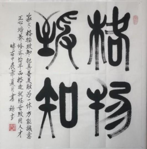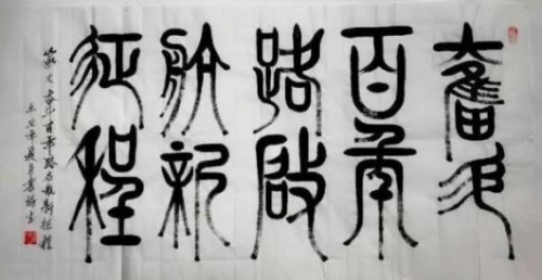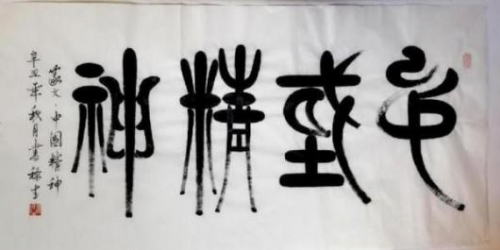 观。雒禄生是掌控线条的高手。他笔下文字孤傲与淡然,有着极高的创造力和灵气。这就触到了书法传承出新的本质。书艺一道,它是生命、生活、境界的拓展和升华。党的十九届五中全会已经奏响新时代文艺的号角。弘扬传统文化,坚守文化自信,把艺术理想融入党和人民的事业之中,已成为新时代每位书家的责任!汤显祖云:“极人物之万途,攒古今之千变”。书法凋敝、失神虽是时代之伤,然而,书道兴衰,匹夫有责,薪火相传,非众力而难为也。如此观之,雒禄生深研篆文门径,思接上古,秉持的是一种文化立场、一种文化坚守、一种文化自觉!即热爱自己国家的艺术,书写自己国家的文字!他终年砥砺淬炼、弘道养正,展现的是他用文化塑魂的精神风貌,“以人民为中心”的责任和担当,自然“胸中有大义、笔下有乾坤”。术业有专攻,艺术集大成,如禄生是也。