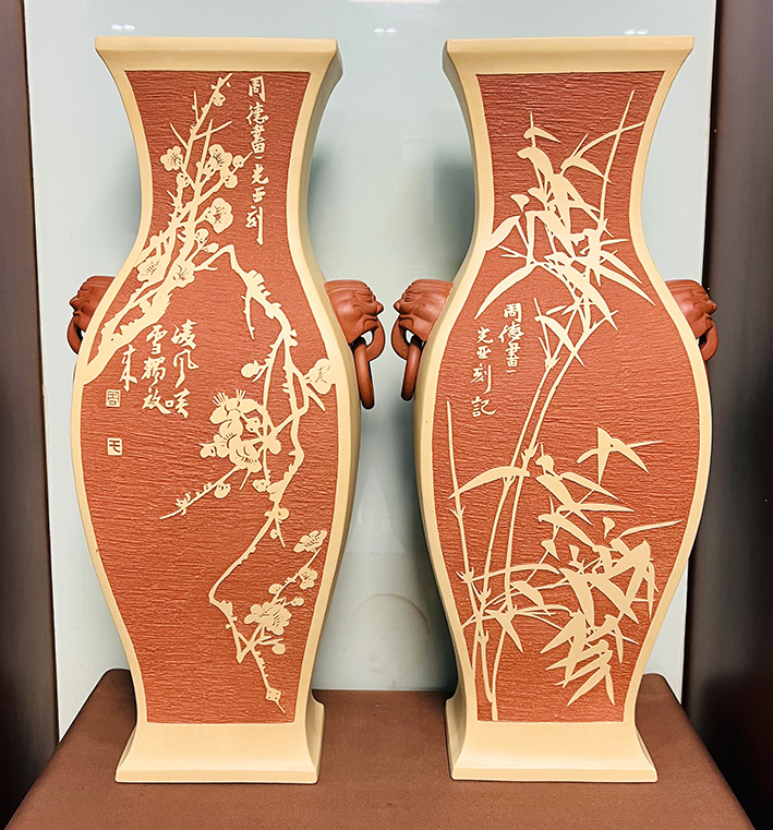 紫砂对瓶 梅兰竹菊 高72公分