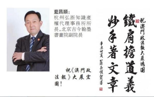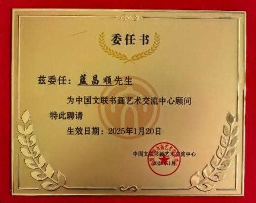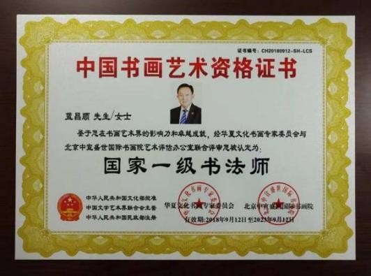 2019 年 5 月蓝昌顺书法作品被中华人民共和国外交部收藏;多次被浙江省浙商研究会评为优秀会员;
