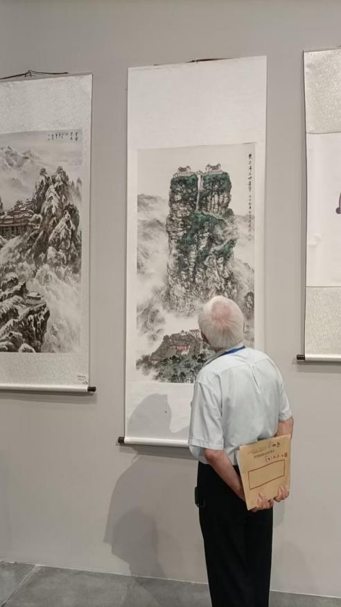 8 月 13 日,由华彩中国项目组委会主办的美术作品展在中央美术学院廊坊馆成功举办,汇聚了众多艺术佳作。其中,刘观庆的梵天净土映苍穹,雪霁老君山,两幅作品凭借独特魅力惊艳全场,更收获了故宫博物院研究员单国强老师的盛赞,成为展览中一道亮眼的风景线。