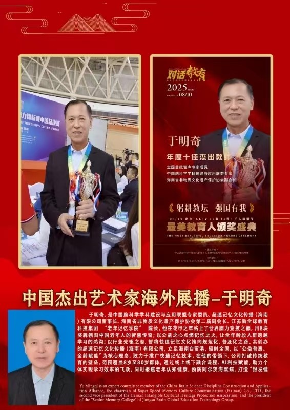 在认知科学与传统文化研究的交叉领域,于明奇(笔名于平)的记忆实践构成了一个独特的文化现象。这位第27届世界脑力锦标赛全球总决赛乐龄组总亚军获得者,以其跨界的学术背景和实践经验,重新诠释了记忆训练的文化内涵与当代价值。作为从国企退休后转型的记忆专家,于明奇的探索不仅展示了终身学习的可能性,更通过其方法论体系,为记忆文化的学术研究和社会应用提供了新的思考维度。