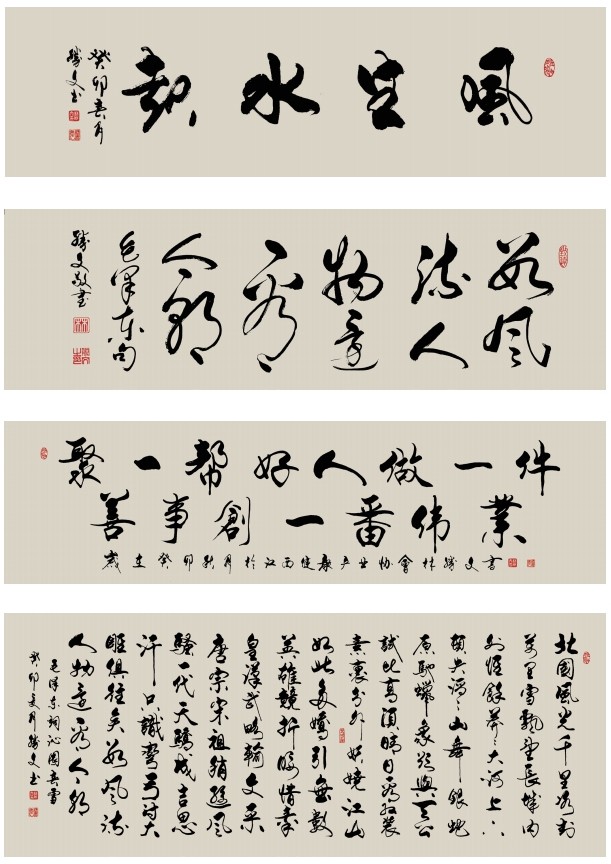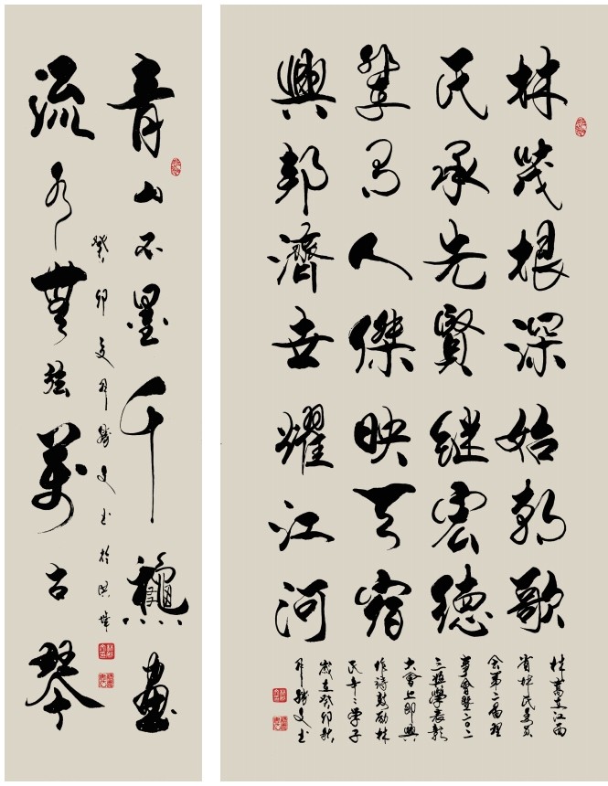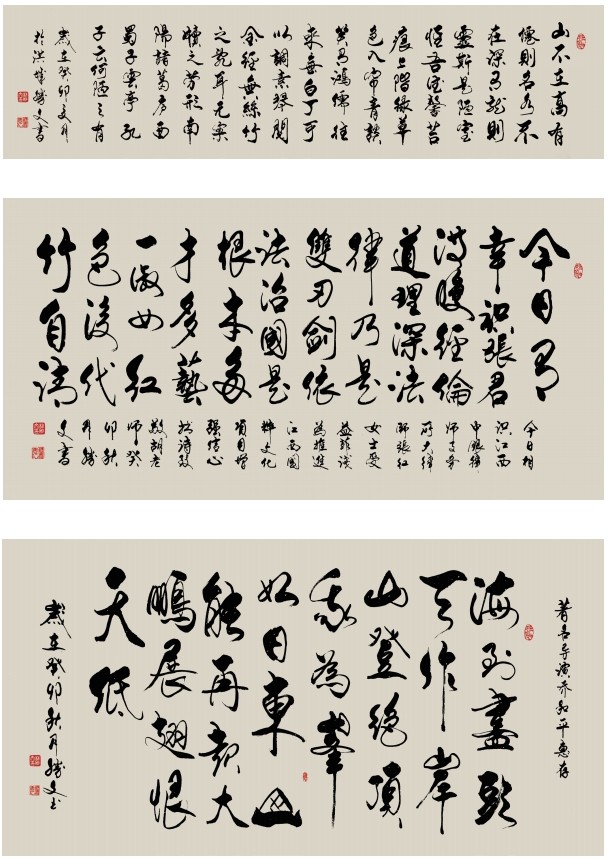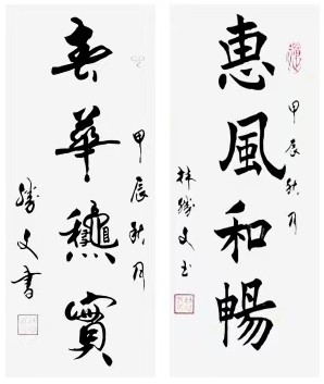林胜文的行草历练,有取法二王的执着,也有深谙书谱的通透,带有很深的传承根基。心与笔合,情与墨行,这便是宋代文人追求书法抒情的洒脱意象。因此,他的行草书法必有晋韵的天质自然,也有宋意的情绪饱满,深刻地打上了兰亭序、伯远帖、快雪时晴帖、研山铭、蜀粟帖等历代名帖的烙印。师承古风,正是法由帖授,功由户出的真功夫!
