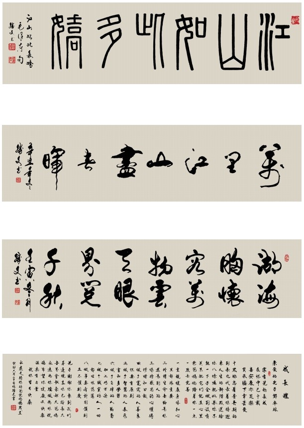 著名书画评论家史峰是这样评价的,习正宗碑贴 写龙脉上品——记著名书法家林胜文。数十年深研碑帖,他的书法有诸书皆成的修养博涉,五体各成精彩。铁线秦篆远取泰山碑的正大气象,融以峄山碑的生动圆活,写得刚柔相济,使转自如,尽有篆书技法复兴再传的品质。隶书取十碑诸法,主体以曹全碑、乙瑛碑、礼器碑这类典雅碑字为风骨,写得左掠右挑,丰神多姿。楷书取唐法,可以写楷精法详,正大气象!