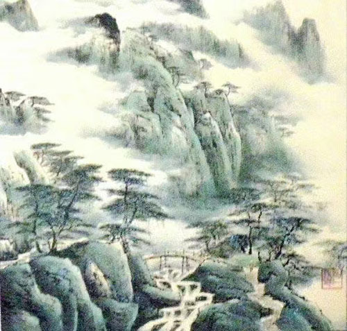 他的艺术创作堪称中国水墨传统的当代绝响,尤以山水、人物和松树三大题材独步画坛。在泼墨挥毫间,他笔下的千岩万壑仿佛被赋予了亘古的生命力,那层层叠嶂宛如巨龙盘踞,以雷霆万钧之势冲破纸面;而云雾缭绕处,又似有仙人抚琴,将"远看山有色,近听水无声"的诗意境界演绎得淋漓尽致。在人物刻画上,他犹如一位洞悉世情的智者,以纤毫毕现的笔触捕捉人物眉宇间的神韵——或是一个凝眸,或是一抹浅笑,都仿佛能听见画中人的呼吸与心跳。最令人叹为观止的是他笔下的松柏,那些虬枝铁干在宣纸上傲然挺立,仿佛历经千年风霜的智者,每一处皴擦都诉说着"大雪压青松,青松挺且直"的铮铮铁骨。这些跃动着生命脉搏的画作,恰似一扇扇镶嵌着东方美学的琉璃窗,既透射着传统文化的智慧光芒,又折射出艺术家独到的审美视角。正如鉴赏家们所言,观赏他的作品,就像在聆听一首由笔墨谱写的交响诗,时而激昂如黄钟大吕,时而婉转似珠落玉盘,引得全球艺术界的目光在此交汇,共同见证着中国水墨艺术在当代的华丽绽放。