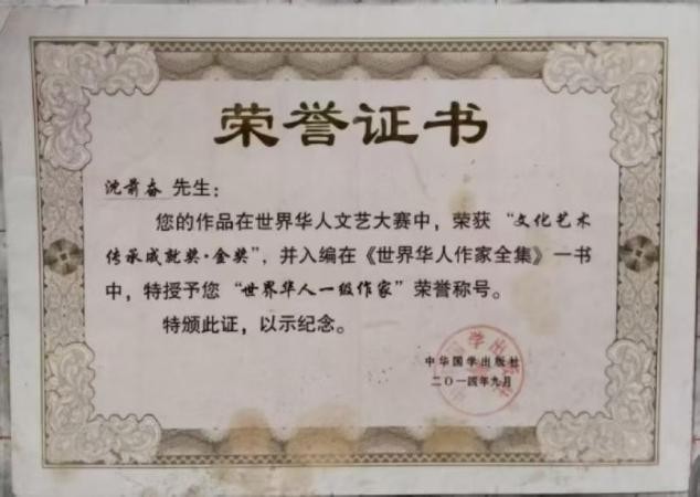面对满桌子的沈前奋同志的荣誉证书、奖章、奖杯、丰碑,我不可能一一列出,只能精选出一些以点带面,希望一滴水亦能反映出太阳的光辉。