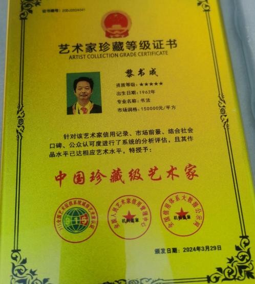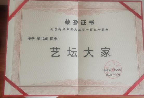 黎书成,男,汉族,中共党员,出生于 1962 年 4 月,湖南 浏阳市 人。毕业于中央广播电视大学,中国一级作家,中国 艺术博士,国家 一级艺术家,国务院国宾礼特供推荐艺术家, 世界教科文卫组织首席艺术家,世界教科文卫组织艺术委员 会执行委员,中国艺术家交流协 会终身名誉主席,中国艺术 学会常务委员会终身常委,中国艺术名家 研究院副理事长, 中国诗书画出版社终身副社长, 中国书画收藏研究 院高级 院士,中国国际交流出版社终身顾问编委,中国未来教育研 究 所研究员,中国经济发展办公室调研员,世界贸易合作总 商会高级研 究员, 中国民族文化研究会诗书画艺术委员会 终身名誉主席,中国国 际艺术网终身艺术顾问,中国管理科 学研究院经济论坛专家委员会特 邀研究员,新华艺术网艺 术委员会执行副主席, 中国文化艺术人才协 会第三届副主 席,中国书画名家研究会副会长,中国书画名家研究会 名誉 主席,中国当代艺术协会主席。