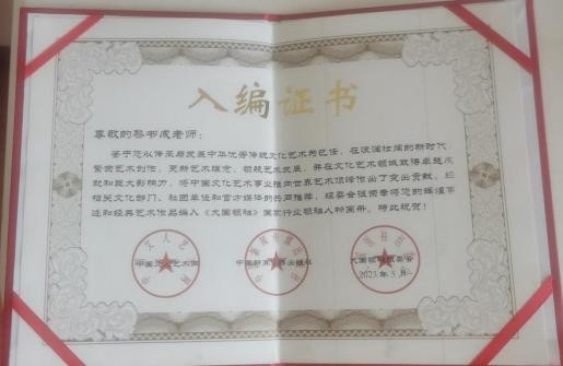 书法作品多次参加全国大赛,获展览并多次获得金奖。现已 在全 国各级报刊电台电视台发表 1000 多篇各类稿件,多 次在北京人民大 会堂受到党和国家领导人的接见和表彰。 荣获“百名中华创业新闻人 物先进个人”,“百名中国时代 新闻人物先进个人”,“全国十佳文 化优秀工作者”,“全 国十佳和谐文化工作者”,“全国五一时代英 模”,“全国创新争优先进个人”,“共和国十佳杰出人物”,“2010 年 度感动中国艺术人物”,“2011 年度感动中国艺术人物”, “2012 年度感动中国艺术人物”,“2013 年度感动中国艺 术 人物”,“ “2013 年度感动世界年度人物”,“首届中 国文艺终身 奖”,“共和国杰出贡献人才”,“中国骄傲之 星”, “中华骄子”, “国际知名文艺家”, “世界艺术大 使”, “杰出艺术大师”, “世纪德艺双馨艺术家”, “世 界艺术大师”, “大不列颠百科艺术家”等荣誉称号。业绩 入编《世界名人录》, 《共和国人物辞 海》, 《世界艺术巨 匠》,《世界艺术瑰宝》,《世界艺术大师》, 《世界典藏》, 《中国艺坛流派宗师》, 《世界殿堂级艺术家》, 《非物质 文化遗产,国礼特供书画家》,《品鉴中国当代名人墨迹》, 《大家印象一一十大艺坛泰斗》, 《全球最具影响力二十位 艺 术家》, 《中国诗坛精英大典》, 《盛世中国七大艺坛文 豪》, 《红 色礼赞》, 《大国崛起,盛世宗师》, 《光辉的 旗帜》,《民族之魂》,《放歌新时代》,《献诗我的祖国》, 《传世诗词三百家》, 《环球华人艺术十大传世名家》,《世 界梦想一一亚欧艺术领军人物》, 巜百年之歌》, 巜国家巨 星》, 巜国魂国艺》, 巜国学经典》, 新版巜世界名人录》 (第四卷),巜为祖国喝彩》,《中华诗 词年鉴》,巜孝经》, 巜一带一路经典珍藏》, 巜中国十大文艺领袖》, 巜中国伟 大艺术家》, 巜海南艺术印象》, 巜影响中国一一国 家十大影响力艺术家》, 巜国之脊梁》, 巜笔墨三国一一中日韩艺 术 三大家》, 《中国美术史》, 巜中国美术通史》, 《中国 最具收藏价 值艺术家》,《大国领袖》,《大国气象》,《与 党同行,艺坛巨擘》, 《奋进新时代 2023 年最具投资价值 的艺术名家》, 《大国艺 术一一十位宝藏级艺术大师》, 巜 中国开派巨匠》,《中华名人名作 大辞海》, 巜天下墨宝》, 《世界美术人物志》, 《中国书画大家》, 《德艺双馨艺术 家》, 《中国书法全集》, 《中国历代书画名 家大辞典》, 《中国近现代书画泰斗八大家》,《领航中国艺术人物 志》, 《新中国十位最伟大艺术家》, 《领航中国》, 《全球文艺 巨星》, 《毛泽东诞辰 130 周年,改革开放四十五周书画作 品集》, 《中国艺术收藏指南》, 《大国外交与国粹》, 《世 界艺术年鉴》等 300 多部大型文献辞书。