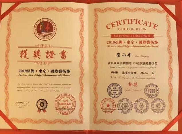 亚洲国际艺术节声乐比赛获得金奖.