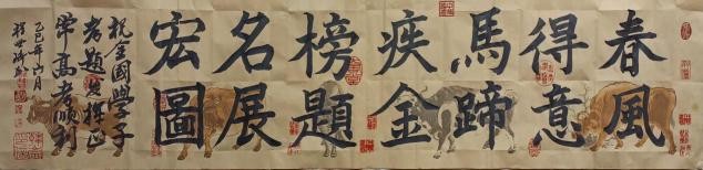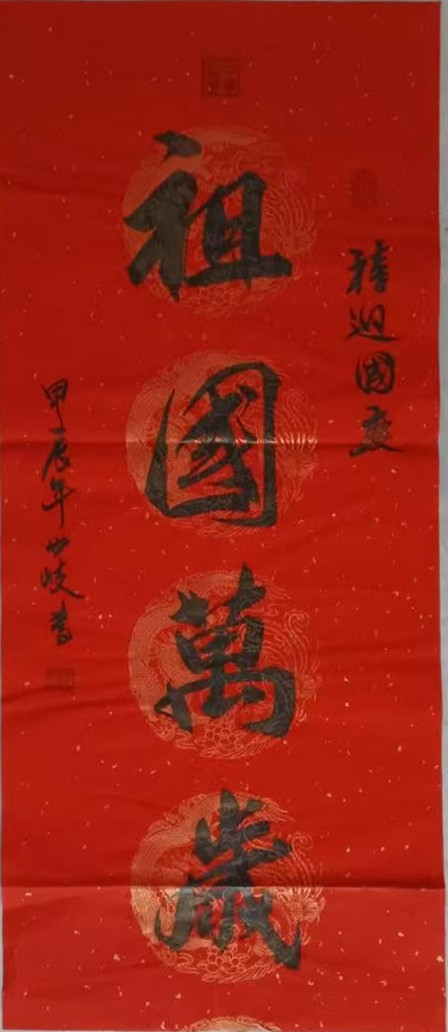 北京 2018年全球华人,华侨春晚现场,程世琦有幸和著名中国书法家泰斗,权希军时年九十二岁,老师现场给徒弟程世琦指点,保利拍买制作书册,程世琦书画册,权老师现场给徒弟书画册指导,点评,未来发展,并在书册签名并合影留念,老爷子话语,铭记心中,未来传承人一代接一代传承创新。