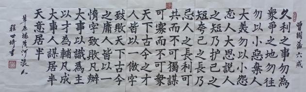 程世琦,1957年10月生于内蒙古包头市,号道真、四方居士、黄河浪人、草原魂。师从著名书法家刘文奇先生。现任:中国书法家协会会员、世界青年文明论坛书画创作委员会委员、中国书画家联谊会新文艺群体书画家工作委员会委员;中国楹联学会书法艺术研究会会员;中国国际书画研究院副院长;人民美术报理事;中国书法家协会会员;中华书画学会副主席;中国民族建筑研究会书画艺术理事会副主席;中国传统文化发展委员会副主席;中国东方高级研究会艺术人才;长城魂当代诗书画协会名誉主席;东坡书画艺术研究院研究员;包头市书法家协会理事;包头市硬笔书法协会理事;书法家协会副主席;中国互联网联盟理事;中国盐城乔木故里书画协会客座教授;中国古文化艺术研究学会特邀学部委员;中国国画艺术研究院理事;特聘为曲阜鸿儒书画院终身副院长。作品入编多部典籍。在庆祝中华人民共和国成立70周年,程世琦中国艺术功勋人物献礼建国70周年大阅兵,在人民报社里一起报刊面上。